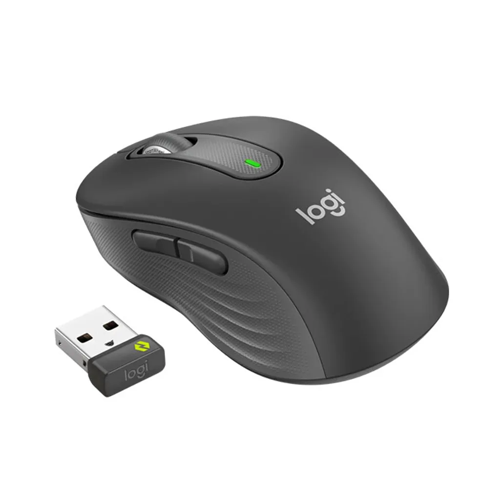 IDEAL FOR People who spend many hours at their desk. PRODUCT BENEFITS ● Contoured shape offered in two sizes (medium and large-right hand only for B2B) ● Helps improve productivity by 50% and speed by 30% compared to a laptop touchpad1 ● Precision and speed scrolling with SmartWheel ● Comfort shape and feel with rubber side grips ● 90% less “clicky” with SilentTouch technology2 ● Customizable side buttons3 with Logi Options+ ● Wireless with 2 ways to connect: Logi Bolt USB receiver, Bluetooth® Low Energy Wireless Technology ● Logi Bolt is Security Mode 1, Security Level 4 and the Logi Bolt USB receiver is pre-paired out-ofbox4 ● 24-month battery life with a single AA battery5 ● Pair up to 6 Logi Bolt products with 1 Logi Bolt receiver3SPECIFICATIONS Certification Global (list available upon request) Compatibility Wireless Connectivity Wireless Range Service Life Reliability Warranty Battery Battery Indicator Tracking Tracking DPI Scrolling Handedness Wireless mouse designed to improve productivity, comfort and overall employee experience. 3 Easy-Switch Logi Options+ Logitech Flow Product Weight Product Dimensions Total Weight with Packaging Sustainability Packaging Dimensions Master Shipper Units Storage Temperature Operating Temperature Software Operating Instructions Location IT Admin Mass Deploy See reverse Logi Bolt, Bluetooth 10 meters 10 million keystrokes MTTF > 150K Hours Mean Time To Failure of electrical components 2-year hardware limited warranty 1 AA battery included 24-month battery life5 No Precision 400-4000 SmartWheel Right No Yes –Logi Options+enabled mouse No Medium: 3.57 oz (101.2 g w/batteries) Large: 3.93 oz (111.2 g w/batteries) Med: 37.8 mm H x 61.8 mm W x 107.9 mm D Large: 41.5 mm H x 65.6 mm W x 118.9 mm D Med: 5.7 oz (162.5 g) Large: 6.0 oz (170.5 g) The plastic parts in Signature M650 include certified post-consumer recycled plastic — 26% for Off White and 64% for Graphite — to give a second life to end-of-life plastic from old consumer electronics and help reduce our carbon footprint.6 3.8 cm H x 14 cm W x 31.5 cm L 10 PK master shipper -5 to 45°C 0 to 40°C Logi Options+, available on Windows and macOS, to customize buttons, work faster and more efficiently – likely back/forward or copy/paste. Instructions included inside box Device firmware updates (DFUs) Logi Options+ Contact your preferred reseller or visit logitech.com/workdesk Logitech Inc. 7700 Gateway Blvd. Newark, Newark, CA 94560 USA © 2021 Logitech. Logitech, Logi and the Logitech Logo are trademarks or registered trademarks of Logitech Europe S.A. and/or its affiliates in the U.S. and other countries. All other trademarks are the property of their respective owners. SIGNATURE M650 FOR BUSINESS SIGNATURE M650L FOR BUSINESS