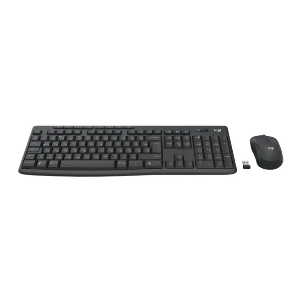 Part NumberGraphite US International (Qwerty) :920-012077DimensionsKeyboardHeight: 149 mmWidth: 441 mmDepth: 18 mmWeight: 498 gMouseHeight: 99 mmWidth: 60 mmDepth: 39 mmWeight: 75.2 gLogi Bolt USB ReceiverHeight: 18.7 mmWidth: 14.4 mmDepth: 6.1 mmWeight: 1.7 gTechnical SpecificationsKeyboard112 total plunger type keysCap lock indicatorSpill-resistantProgrammable F-row and shortcut keysTilt legs with adjustable height2 AAA batteries (included)MouseSilent Touch technologySmooth optical tracking1000 DPI tracking2 buttons, left and rightScrollwheel1 AA battery (included)Wireless Connectivity and RangeLogi Bolt USB ReceiverBluetooth Low Energy Wireless TechnologyUp to 10 meters wireless operating distanceOptional softwareLogi Options+ for Windows and macOSSustainabilityKeyboard: 50% post-consumer recycled plasticMouse: 48% post-consumer recycled plasticPaper Packaging: FSC-certifiedWarranty Information2-Year Limited Hardware Warranty